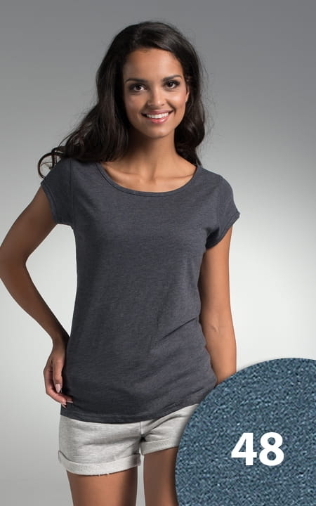 - t-shirt damski z krótkim rękawem wykonany z dzianiny single jersey typu slub;