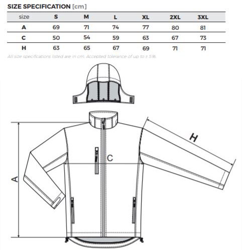 - informacja o pielęgnacji tkaniny softshell do pobrania pod tabelą rozmiarów