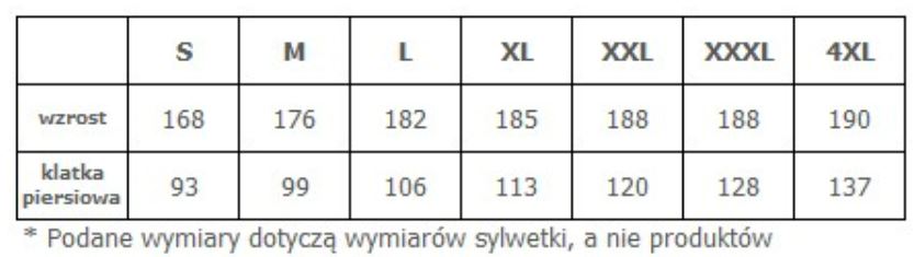- Podane wymiary dotyczą wymiarów sylwetki, a nie produktów!